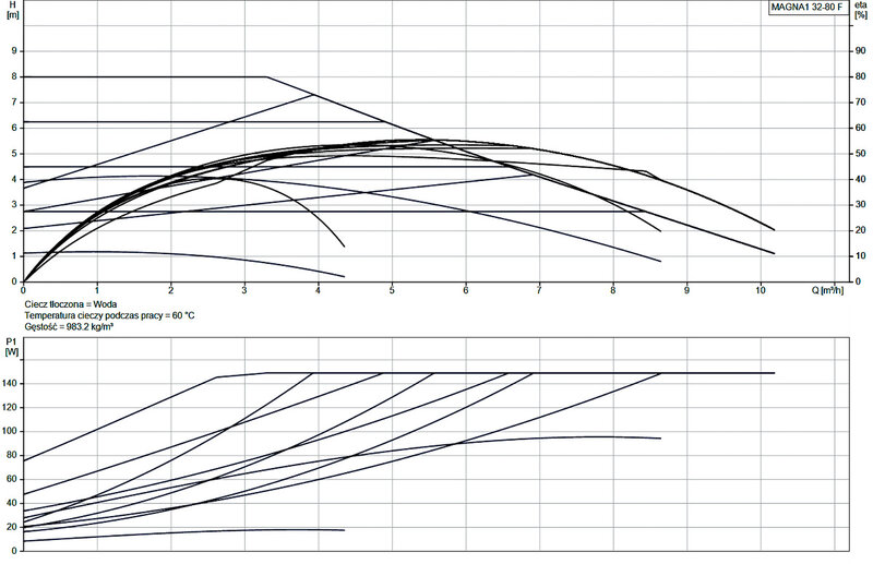 Pompa cyrkulacyjna Grundfos MAGNA1 to prosta opcja dla dobrze wykonanej pracy. Dzięki wysokiej sprawności energetycznej, produkt spełnia wymagania przepisów EuP 2015, zapewniając znaczne oszczędności energii elektrycznej, a dzięki intuicyjnemu, przyjaznemu dla użytkownika interfejsowi i bezobsługowej konstrukcji, MAGNA1 jest idealną pompą cyrkulacyjną dla podstawowych potrzeb w zastosowaniach, w których wymagane jest podstawowe sterowanie i monitorowanie systemu. Dzięki tej gamie pomp cyrkulacyjnych wszystko, od konfiguracji po podstawowe sterowanie i monitorowanie, jest łatwe. Dzięki konstrukcji z wirnikiem puszkowym pompa nie wymaga konserwacji. MAGNA1 oferuje możliwość monitorowania pompy poprzez wyjście przekaźnika awarii. Cyfrowe wejście start/stop zdalnie steruje pompą. Pompa komunikuje się bezprzewodowo z aplikacją Grundfos GO Remote. MAGNA1 może pracować jako pompa główna zarówno w aplikacjach grzewczych, jak i chłodniczych, w tym: Pętle mieszające Powierzchnie grzewcze Powierzchnie klimatyzacyjne Systemy gruntowych pomp ciepła Mniejsze zastosowania agregatów wody lodowej. MAGNA1 jest pompą jednofazową i charakteryzuje się tym, że sterownik i panel sterowania są zintegrowane w skrzynce sterowniczej. Obudowa pompy jest dostępna zarówno w wersji żeliwnej, jak i ze stali nierdzewnej. Kompozytowa puszka wirnika jest wzmocniona włóknem węglowym, płyta łożyskowa i okładzina wirnika są wykonane ze stali nierdzewnej, a obudowa stojana jest wykonana z aluminium. Elektronika mocy jest chłodzona powietrzem. W pompie zastosowano 4-biegunowy silnik synchroniczny z magnesami trwałymi (silnik PM). Ten typ silnika charakteryzuje się wyższą sprawnością niż konwencjonalny asynchroniczny silnik klatkowy. Prędkość pompy jest kontrolowana przez zintegrowaną przetwornicę częstotliwości.
