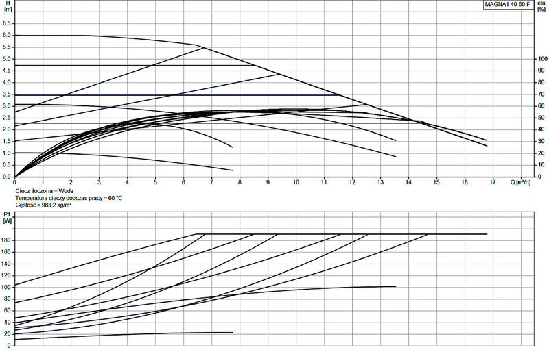 Pompa cyrkulacyjna Grundfos MAGNA1 to prosta opcja dla dobrze wykonanej pracy. Dzięki wysokiej sprawności energetycznej, produkt spełnia wymagania przepisów EuP 2015, zapewniając znaczne oszczędności energii elektrycznej, a dzięki intuicyjnemu, przyjaznemu dla użytkownika interfejsowi i bezobsługowej konstrukcji, MAGNA1 jest idealną pompą cyrkulacyjną dla podstawowych potrzeb w zastosowaniach, w których wymagane jest podstawowe sterowanie i monitorowanie systemu. Dzięki tej gamie pomp cyrkulacyjnych wszystko, od konfiguracji po podstawowe sterowanie i monitorowanie, jest łatwe. Dzięki konstrukcji z wirnikiem puszkowym pompa nie wymaga konserwacji. MAGNA1 oferuje możliwość monitorowania pompy poprzez wyjście przekaźnika awarii. Cyfrowe wejście start/stop zdalnie steruje pompą. Pompa komunikuje się bezprzewodowo z aplikacją Grundfos GO Remote. MAGNA1 może pracować jako pompa główna zarówno w aplikacjach grzewczych, jak i chłodniczych, w tym: Pętle mieszające Powierzchnie grzewcze Powierzchnie klimatyzacyjne Systemy gruntowych pomp ciepła Mniejsze zastosowania agregatów wody lodowej. MAGNA1 jest pompą jednofazową i charakteryzuje się tym, że sterownik i panel sterowania są zintegrowane w skrzynce sterowniczej. Obudowa pompy jest dostępna zarówno w wersji żeliwnej, jak i ze stali nierdzewnej. Kompozytowa puszka wirnika jest wzmocniona włóknem węglowym, płyta łożyskowa i okładzina wirnika są wykonane ze stali nierdzewnej, a obudowa stojana jest wykonana z aluminium. Elektronika mocy jest chłodzona powietrzem. W pompie zastosowano 4-biegunowy silnik synchroniczny z magnesami trwałymi (silnik PM). Ten typ silnika charakteryzuje się wyższą sprawnością niż konwencjonalny asynchroniczny silnik klatkowy. Prędkość pompy jest kontrolowana przez zintegrowaną przetwornicę częstotliwości.
