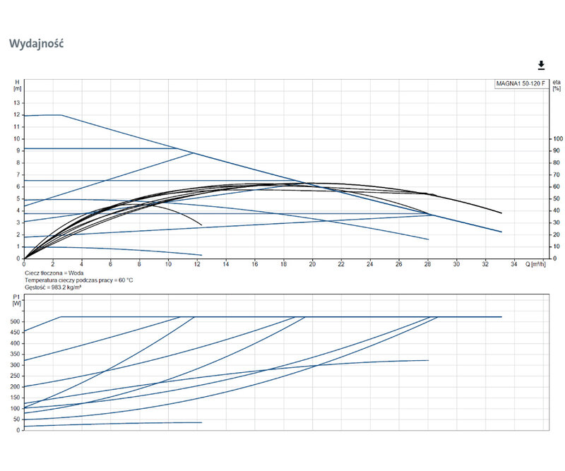 Pompa cyrkulacyjna Grundfos MAGNA1 to prosta opcja dla dobrze wykonanej pracy. Dzięki wysokiej sprawności energetycznej, produkt spełnia wymagania przepisów EuP 2015, zapewniając znaczne oszczędności energii elektrycznej, a dzięki intuicyjnemu, przyjaznemu dla użytkownika interfejsowi i bezobsługowej konstrukcji, MAGNA1 jest idealną pompą cyrkulacyjną dla podstawowych potrzeb w zastosowaniach, w których wymagane jest podstawowe sterowanie i monitorowanie systemu. Dzięki tej gamie pomp cyrkulacyjnych wszystko, od konfiguracji po podstawowe sterowanie i monitorowanie, jest łatwe. Dzięki konstrukcji z wirnikiem puszkowym pompa nie wymaga konserwacji. MAGNA1 oferuje możliwość monitorowania pompy poprzez wyjście przekaźnika awarii. Cyfrowe wejście start/stop zdalnie steruje pompą. Pompa komunikuje się bezprzewodowo z aplikacją Grundfos GO Remote. MAGNA1 może pracować jako pompa główna zarówno w aplikacjach grzewczych, jak i chłodniczych, w tym: Pętle mieszające Powierzchnie grzewcze Powierzchnie klimatyzacyjne Systemy gruntowych pomp ciepła Mniejsze zastosowania agregatów wody lodowej. MAGNA1 jest pompą jednofazową i charakteryzuje się tym, że sterownik i panel sterowania są zintegrowane w skrzynce sterowniczej. Obudowa pompy jest dostępna zarówno w wersji żeliwnej, jak i ze stali nierdzewnej. Kompozytowa puszka wirnika jest wzmocniona włóknem węglowym, płyta łożyskowa i okładzina wirnika są wykonane ze stali nierdzewnej, a obudowa stojana jest wykonana z aluminium. Elektronika mocy jest chłodzona powietrzem. W pompie zastosowano 4-biegunowy silnik synchroniczny z magnesami trwałymi (silnik PM). Ten typ silnika charakteryzuje się wyższą sprawnością niż konwencjonalny asynchroniczny silnik klatkowy. Prędkość pompy jest kontrolowana przez zintegrowaną przetwornicę częstotliwości.
