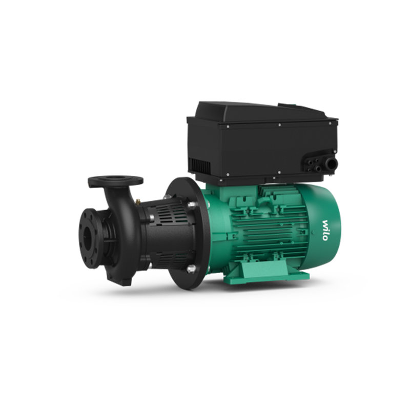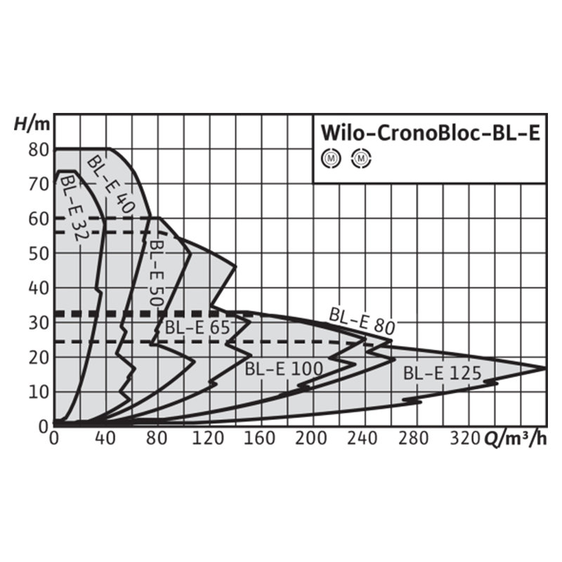 Wilo CronoBloc-BL-E to elektronicznie regulowana, jednostopniowa pompa wirowa, dławnicowa o konstrukcji blokowej z osiowym króćcem ssawnym i promieniowo umieszczonym przyłączem ciśnieniowym. Pompa ma przyłącze kołnierzowe i automatyczne dopasowanie wydajności.