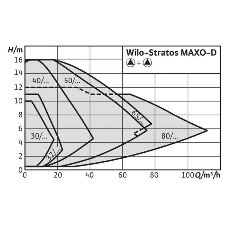 Wilo Stratos MAXO D to podwójna, bezdławnicowa inteligentna obiegowa pompa z przyłączem kołnierzowym lub gwintowym, silnikiem EC oraz wbudowanym elektronicznym dopasowaniem wydajności. Doskonale sprawdza się w wodnych instalacjach grzewczych wszystkich rodzajów, instalacjach klimatyzacyjnych, zamkniętych obiegach chłodzenia, przemysłowych instalacjach cyrkulacyjnych.