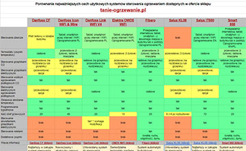 Dla osób które chcą dokonać świadomego wyboru w zakresie sterowania ogrzewaniem w budynku, przygotowaliśmy zestawienie systemów sterowania dostępnych w naszym sklepie. Zestawienie pozwala na porównanie 8 radiowych i przewodowych systemów sterowania ogrzewaniem grzejnikowym, podłogowym oraz elektrycznym w zakresie kluczowych cech użytkowych, wymagań co do instalacji oraz funkcji dodatkowych.Jeżeli chcesz najkorzystniej kupić system sterowania ogrzewaniem