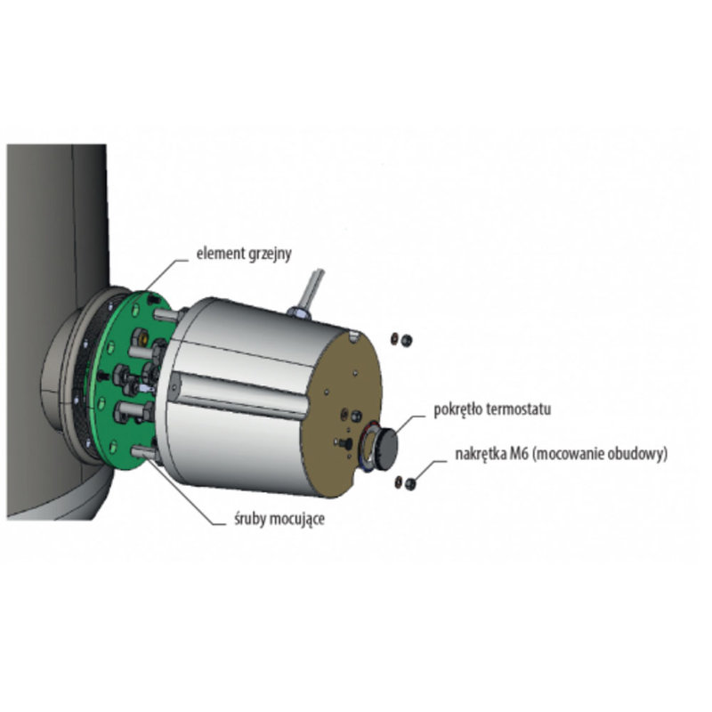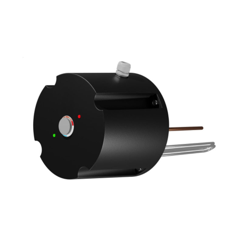 Grzałka elektryczna z modułem sterującym do zasobników i podgrzewaczy firmy Galmet montowana na flanszę o średnicy 180mm.