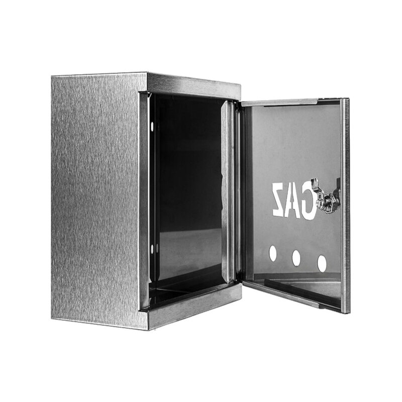 Skrzynka wykonana jest ze stali nierdzewnej, co gwarantuje jej żywotność i pełną 100% odporność na korozje oraz warunki atmosferyczne.