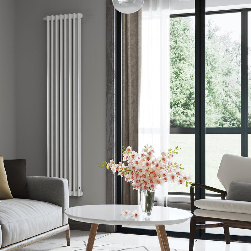 Grzejnik pionowy Tubus 2 firmy Instal Projekt to dekoracyjny grzejnik żeberkowy do wodnych instalacji centralnego ogrzewania.