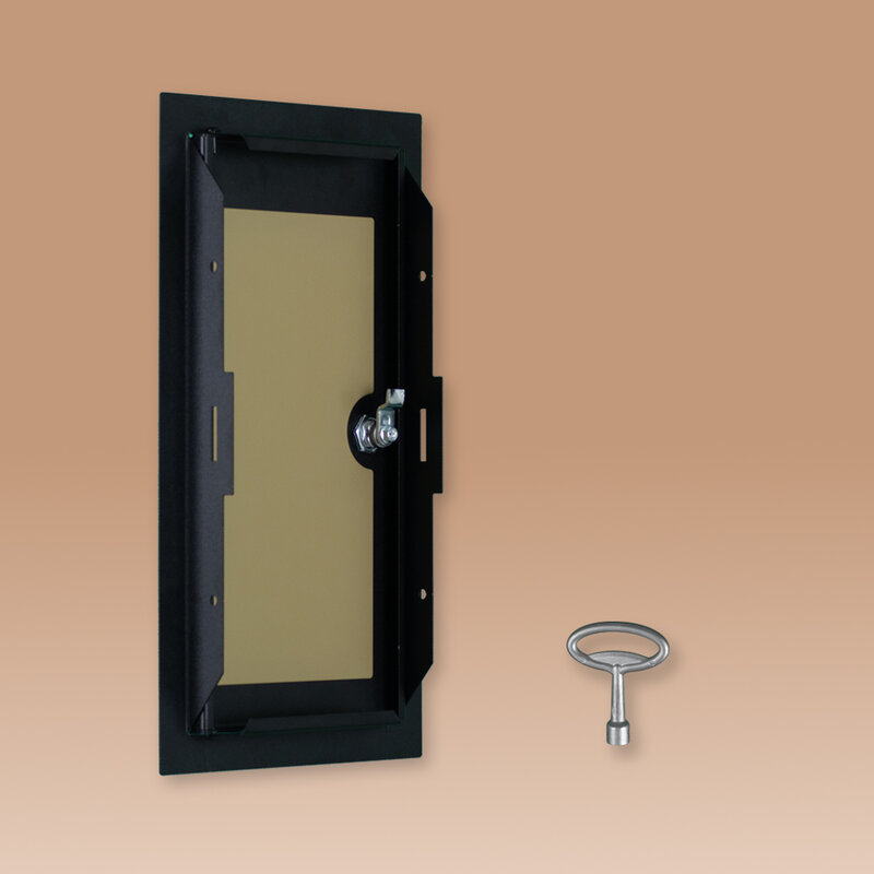 Drzwiczki z ramką wykonane są ze stali ocynkowanej malowanej proszkowo na kolor matowy. Elementy są cięte laserowo i gięte za pomocą maszyn CNC i nie zawierają spawów typowych dla tradycyjnych konstrukcji. Lakier proszkowy utrwalany termicznie dodatkowo zabezpiecza elementy stalowe i nadaje im elegancki wygląd. Dzięki temu drzwiczki są trwałe i zachowują swój wygląd przez wiele lat.