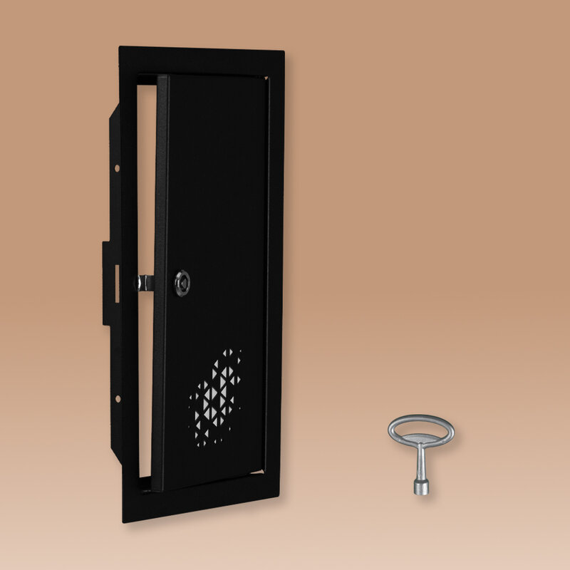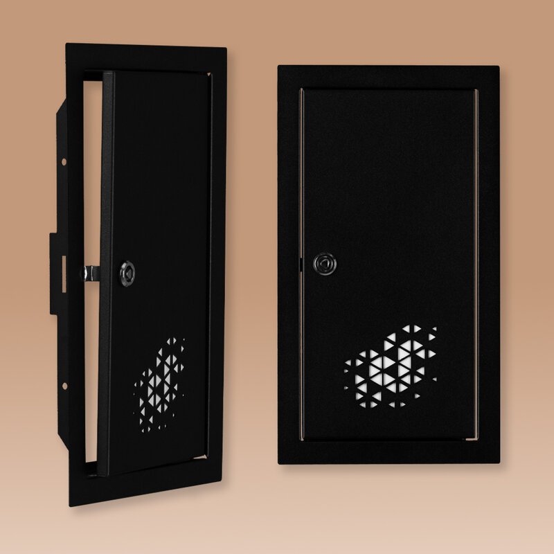 Drzwiczki z ramką wykonane są ze stali ocynkowanej malowanej proszkowo na kolor matowy. Elementy są cięte laserowo i gięte za pomocą maszyn CNC i nie zawierają spawów typowych dla tradycyjnych konstrukcji. Lakier proszkowy utrwalany termicznie dodatkowo zabezpiecza elementy stalowe i nadaje im elegancki wygląd. Dzięki temu drzwiczki są trwałe i zachowują swój wygląd przez wiele lat.
