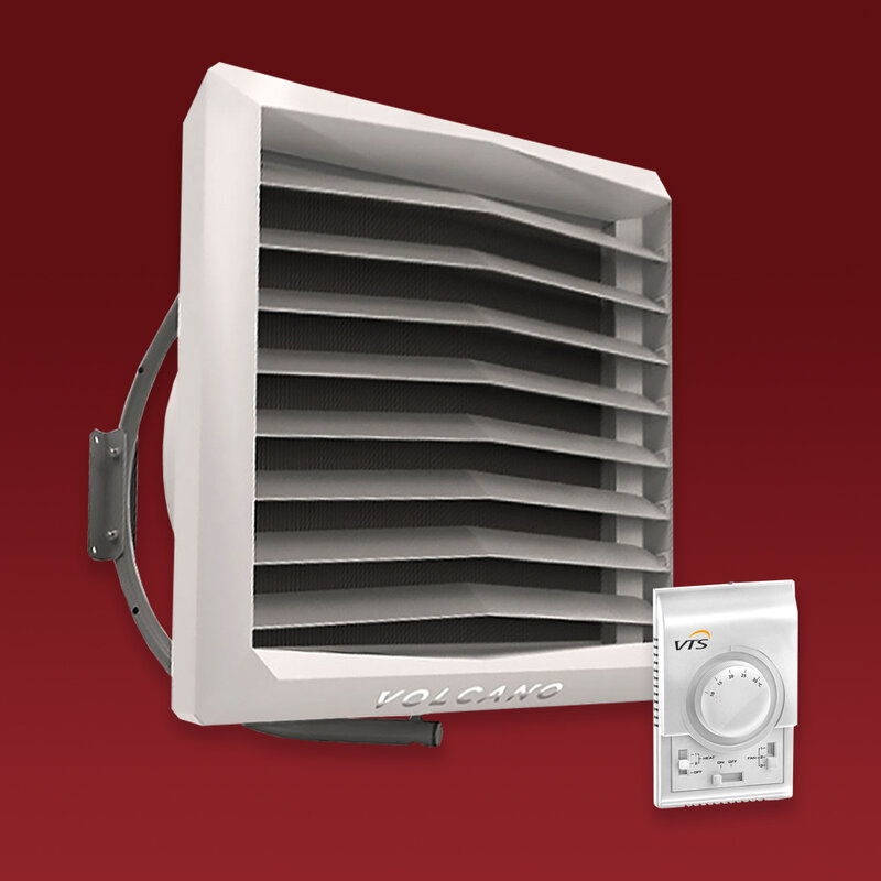 Nagrzewnica powietrza Volcano ze skokową trzypoziomową regulacją prędkości obrotowej do ogrzewania pomieszczeń takich jak: magazyn, warsztat, biuro, sklep, hala produkcyjna.