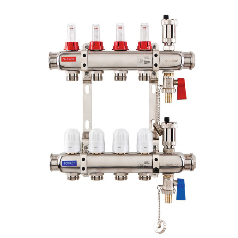 Rozdzielacz podłogowy Inox 4-portowy z osprzętem