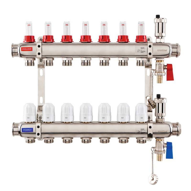 Rozdzielacz podłogowy Inox 7-portowy z osprzętem