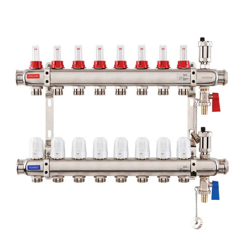 Rozdzielacz podłogowy Inox 8-portowy z osprzętem