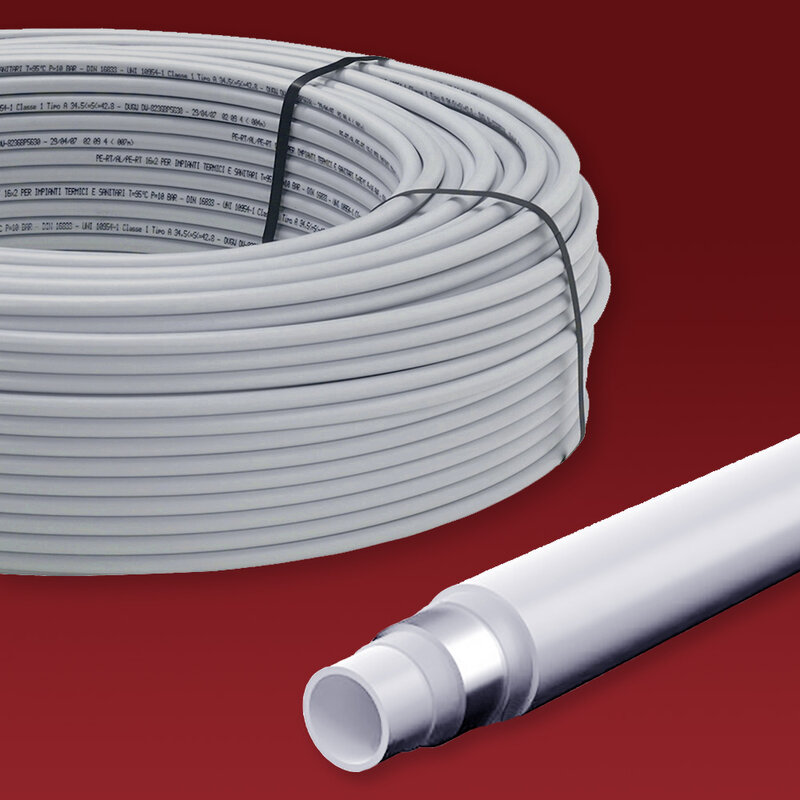 Rura pex marki Purmo z serii Cleverfit PE-RT/AL/PE-RT . Jest to uniwersalna rura z wkładką aluminiową przeznaczona do ogrzewania podłogowego, ogrzewania grzejnikowego, wody użytkowej ciepłej i zimnej, wody lodowej i zastosowań przemysłowych itp.