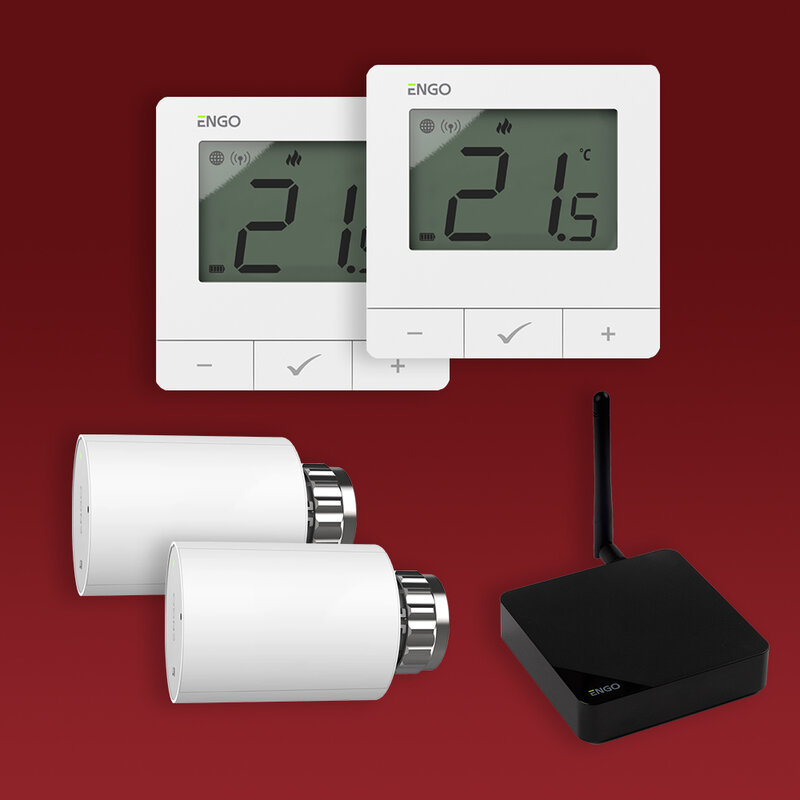 Prezentowany zestaw startowy to kompletne rozwiązanie do sterowania ogrzewaniem grzejnikowym dla dwóch pomieszczeń z dwoma grzejnikami i możliwością rozbudowy o kolejne grzejniki i pomieszczenia. Zestaw głowic Engo Smart to najprostszy sposób na wymierne oszczędności w zakresie kosztów ogrzewania mieszkania lub budynku.