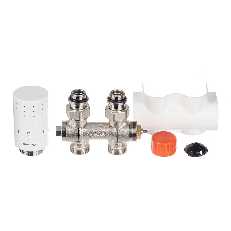 Ozdobny zestaw marki Comap do grzejników dekoracyjnych i łazienkowych z przyłączem dolnym w rozstawie 50mm i złączem 1/2 cala.