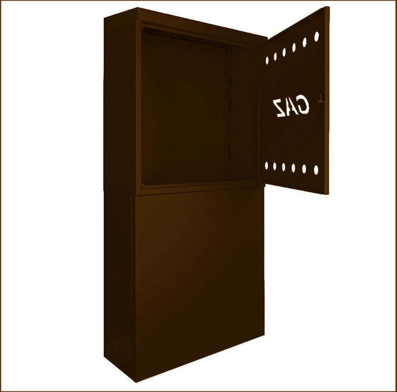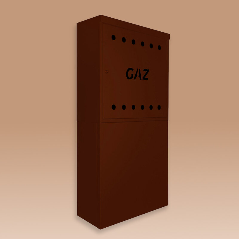Skrzynka gazowa 60x60x25 cm TB brązowa w ogrodzeniu z postumentem wolnostojąca