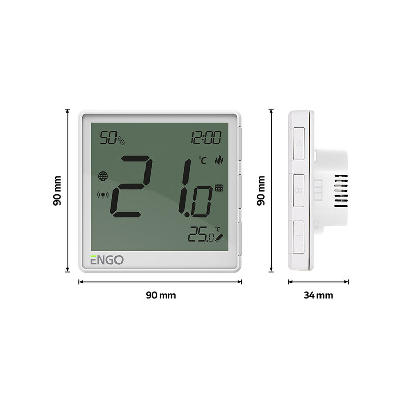 Wymiary termostatu: 90 x 90 x 34 mm