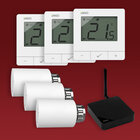 Termostaty radiowe do sterowania kotłów i pieców, grzejników elektrycznych oraz pomp obiegowych. Komplet to moduł wykonawczy (przekaźnik załączający) i przenośny moduł do pomiaru temperatury.