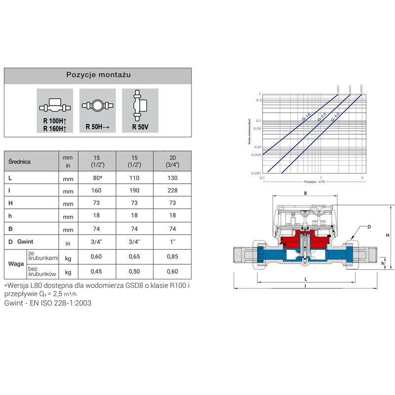 Wodomierz GSD8-I DN15 G3/4 Q=1,6m3/h antymagnetyczny woda zimna (radio opcja)