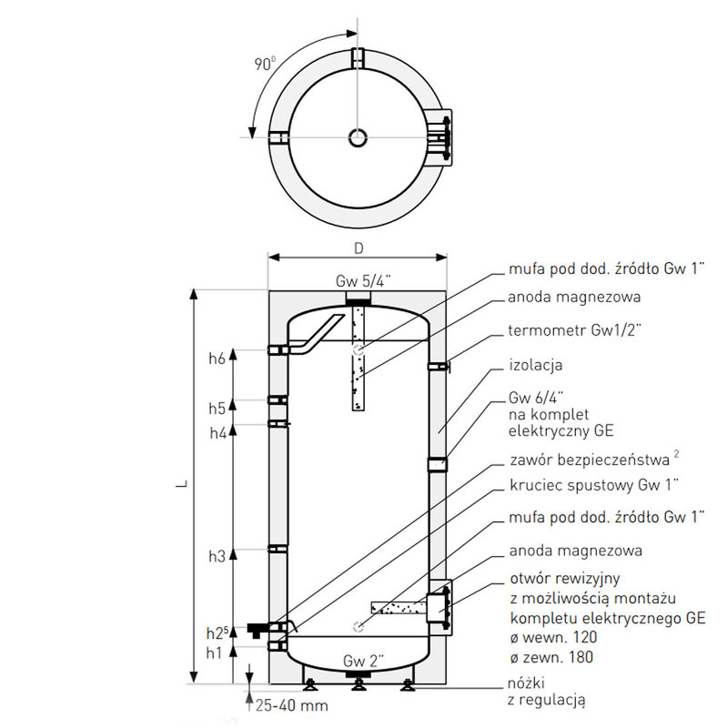 - możliwość zamontowania grzałki elektrycznej Gw 6/4 cala,